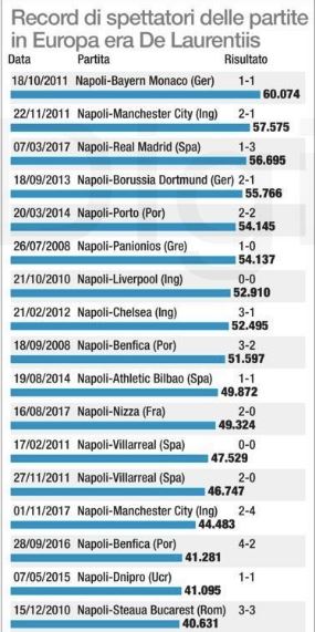 Champions e EL, tutti record di presenze al San Paolo (Grafico)
