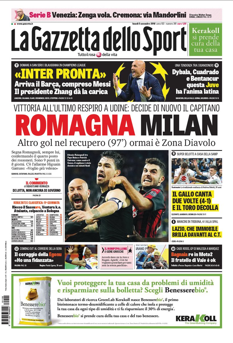 NewsCalcioIn Evidenza Rassegna stampa del 5 novembre. L’edicola sportiva nazionale By Giuseppe Sacco il Nov 5, 2018 - 07:40:34 0 Condividi Oggi in primo piano abbiamo trovato per i nostri lettori Factory della Comunicazione EdicolaPagineprimeRassegna 0 Condividi FacebookTwitterGoogle+ReddItWhatsAppPinterestE-mail