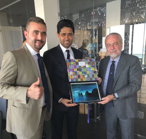 Al termine dell’incontro, molto cordiale, il presidente De Laurentiis ha consegnato ad Al Khelaifi, un’opera originale dell’artista napoletano Gennaro Regina