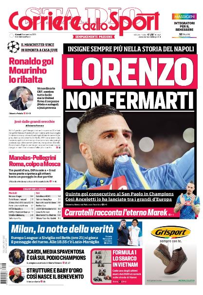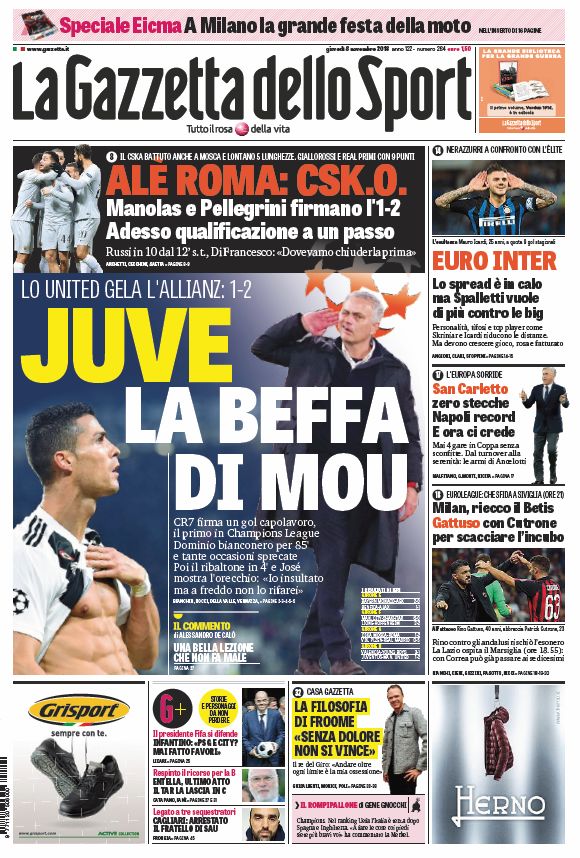 NewsCalcioIn Evidenza Rassegna stampa dell’ 8 novembre. L’edicola sportiva nazionale By Giuseppe Sacco il Nov 8, 2018 - 08:00:56 0 Condividi Oggi in primo piano sui principali quotidiani sportivi nazionali Factory della Comunicazione EdicolaPagineprimeRassegna 0 Condividi FacebookTwitterGoogle+ReddItWhatsAppPinterestE-mail