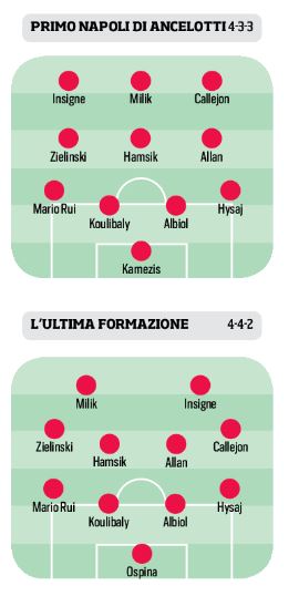 Il 4-3-3 è una carezza tenera che s’eleva tra i ricordi di quei novantuno punti rimasti una meravigliosa ossessione: però adesso che Napoli ha (ri)scoperto ch’esiste un altro calcio e ch’è possibile realizzarlo, a chi non vuol restare imprigionato da un dogma o dagli schieramenti precostituiti a questa o a quella corrente di pensiero, colpiscono il senso pratico, la mentalità (internazionale?), l’autorevolezza, la versatilità d’una squadra che ha talenti talmente ampi da poter occupare il campo in lungo e in largo, con la difesa a tre e mezzo e senza il trequartista, né rombi e né tridenti, e però con equilibri egualmente realizzabili e una personalità a prova di bombe d’acqua, come a Marassi. Un Napoli fuori da ogni schema…. Fonte: C dS