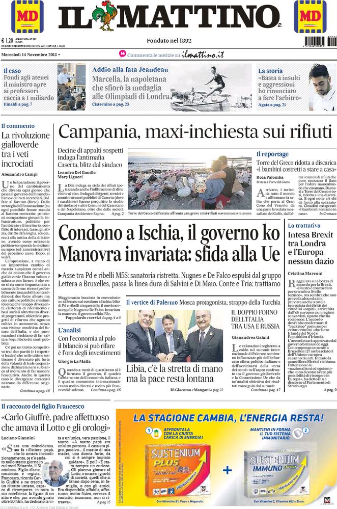 NewsCalcioIn Evidenza Rassegna stampa del 14 novembre. L’edicola delle prime pagine By Giuseppe Sacco il Nov 14, 2018 - 07:40:22 0 Condividi Oggi le news di prima pagina Factory della Comunicazione EdicolaPagineprimeRasegna 0 Condividi FacebookTwitterGoogle+ReddItWhatsAppPinterestE-mail