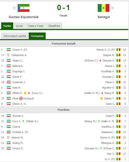 Finisce 0-1 Guinea-Senegal, gara valida per l’African Nations League. A Kalidou Koulibaly è toccato l’onere di guidare la difesa per novants minuti mentre il centrocampista Amadou Diawara non è sceso in campo. Perr gli ospiti decide l’autorete di Mese. Con questo successo il Senegale balza al primo posto con 13 punti, mentre la Guinea resta ccon tre punti in graduatoria.