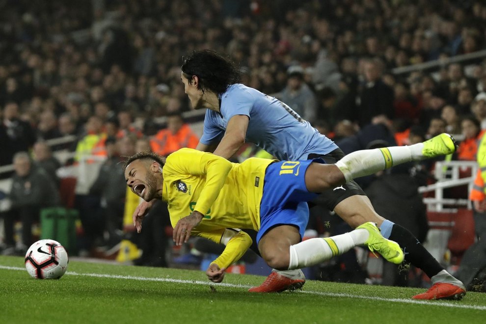 Il Matador l’ha fatta grossa. Ha buttato a terra, dopo averlo inseguito, mister 222 milioni, colpevole di averlo sbeffeggiato con un tunnel a centrocampo durante Brasile-Uruguay amichevole (amichevole?)