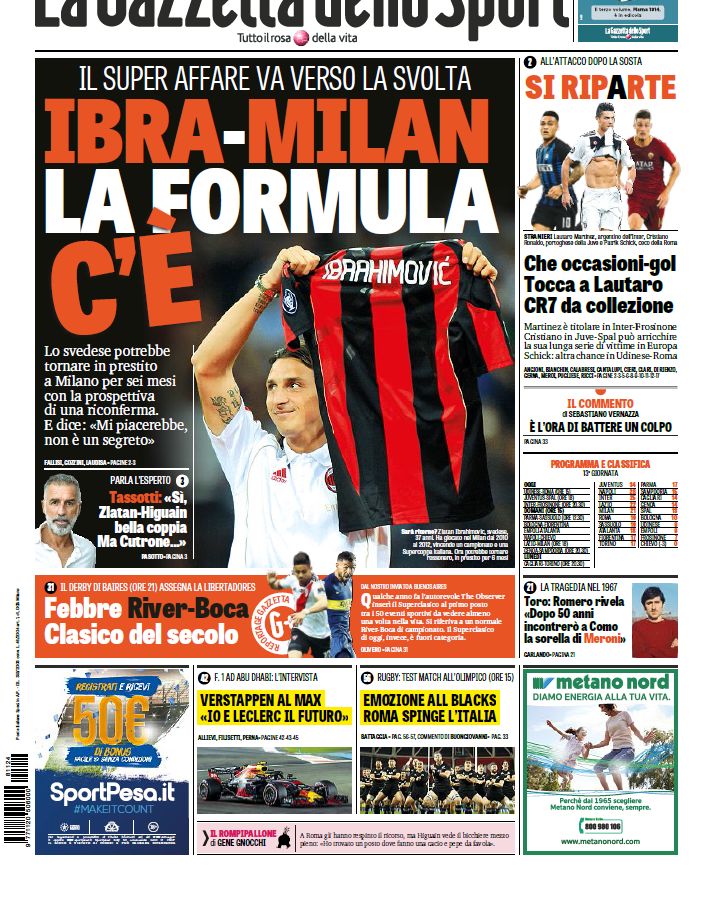 NewsCalcioIn Evidenza Rassegna stampa del 24 novembre. L’edicola sportiva nazionale By Giuseppe Sacco il Nov 24, 2018 - 08:00:18 0 Condividi Oggi in primo piano sui quotidiani sportivi nazionali Factory della Comunicazione EdicolaRassegnaStampa 0 Condividi FacebookTwitterGoogle+ReddItWhatsAppPinterestE-mail