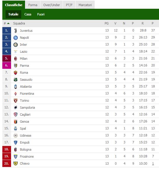 Classifica serie A – Il Napoli sente il fiato dell’Inter. Atalanta contro gli azzurri senza Ilicic