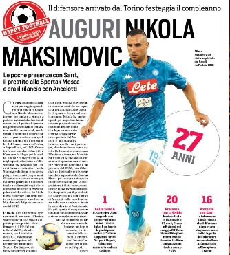 Compleanno in casa azzurra. Nikola Maksimovic compie 27 anni.Il difensore azzurro è nato il 25 novembre del 1991 a Bajina Basta (Serbia).