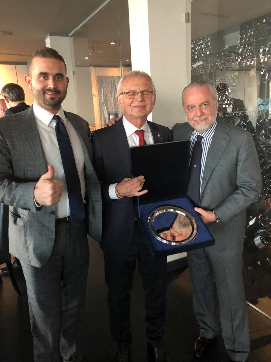 Pranzo UEFA sulla meravigliosa spiaggia di Posillipo, nell’incantevole ristorante stellato Michelin, Palazzo Petrucci , il presidente Aurelio De Laurentiis ha ospitato i vertici della Stella Rossa, oltre ai rappresentanti dell’Uefa. Al termine dell’incontro, molto cordiale, il presidente De Laurentiis ha consegnato al Presidente Svetozar Mijailovic un’opera della tradizione dei presepi napoletani dell’artista Ferrigno.