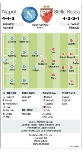 Intesa ormai perfetta con Insigne, i due piccoletti dell’attacco azzurro si trovano a memoria: dialoghi nello stretto, uno-due, giocate a tutta velocità. Si cercano e si trovano e si scambiano assist: in campionato hanno segnato lo stesso numero di gol (sette): in Champions è più avanti Lorenzo che ha segnato tre reti, una a Liverpool al San Paolo e due al Psg, una all’andata e l’altra al ritorno. Contro la Stella Rossa più che mai la loro rapidità potrà risultare determinante per fare breccia in spazi che saranno chiusi, come all’andata.