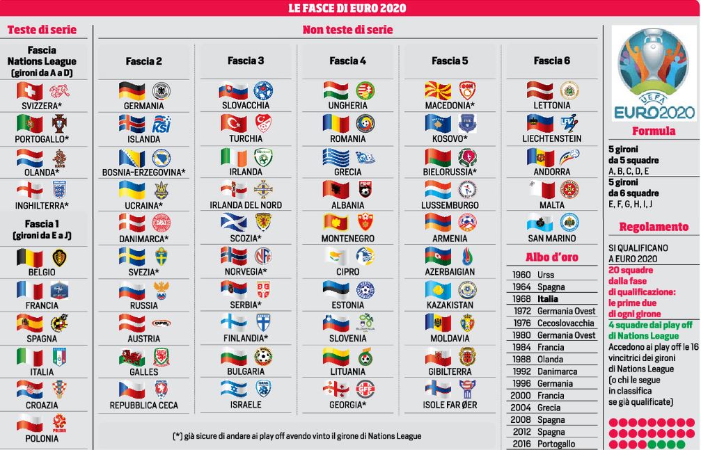 Euro 2020 – Oggi (ore 12,00) il sorteggio a Dublino. Ecco come seguirla in TV