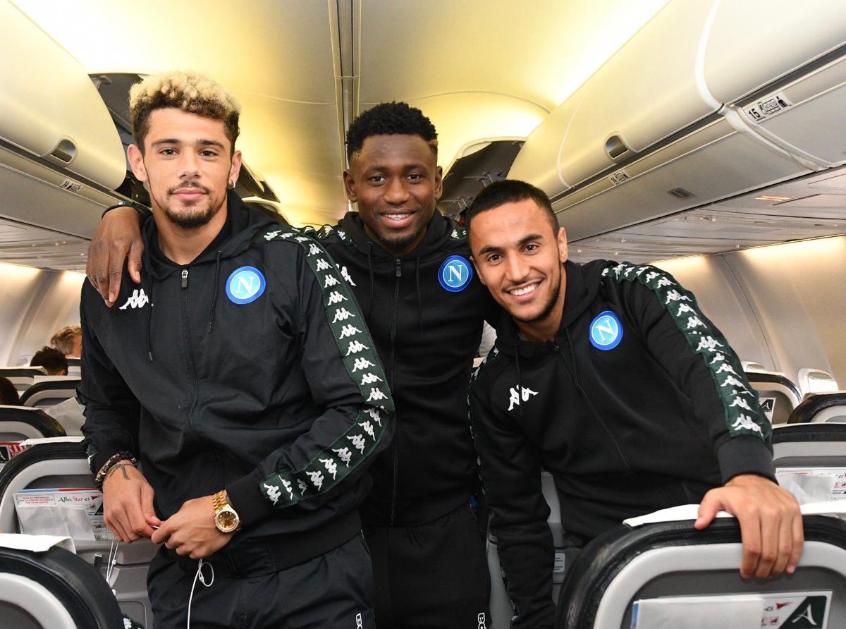 Tommaso Starace sul suo profilo e la ssc Napoli pubblicano le foto dello spogliatoi e la partenza in aereo