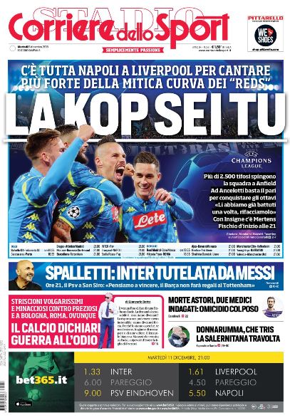 CdS Campania – ” La KOP sei tu”. Ancelotti e Napoli canteranno più forte dei Reds