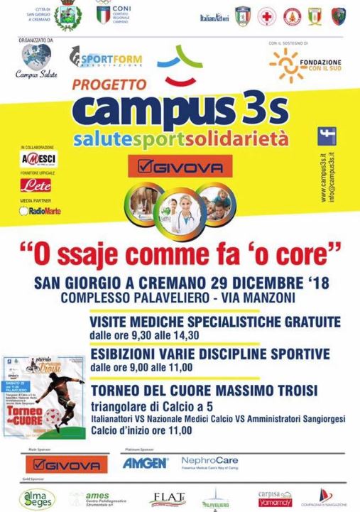 Sarà possibile usufruire di Visite Cardiologiche Gratuite e partecipare ed assistere a Tanti eventi sportivi fra cui il Torneo del Cuore, un triangolare di calcio a 5 !!!