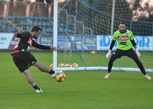 Castelvoturno. La squadra ha svolto attivazione a secco in avvio e di seguito torello.Successivamente esercitazioni su calci da fermo.Chiusura con partitina a campo ridotto.