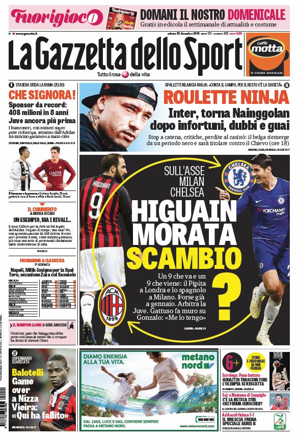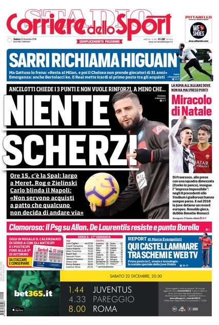 NewsCalcioIn Evidenza Rassegna stampa del 22 dicembre. L’edicola delle prime pagine By Giuseppe Sacco il Dic 22, 2018 - 07:30:05 0 Condividi Factory della Comunicazione Queste le prime pagine sui principali quotidiani sportivi nazionali PagineRassegnasportiveStampa 0 Condividi FacebookTwitterGoogle+ReddItWhatsAppPinterestE-mail