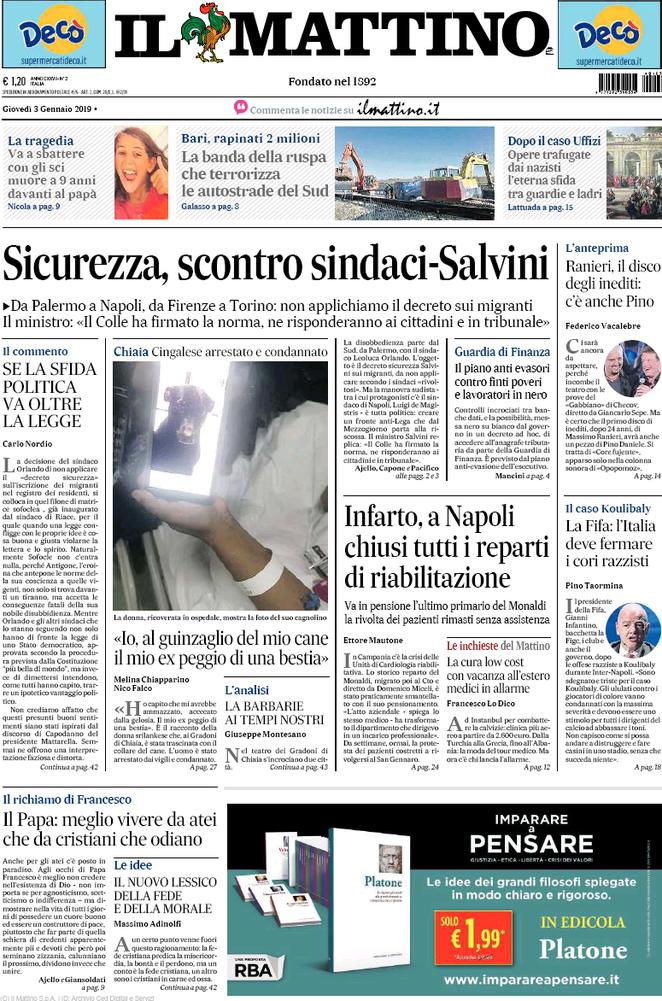 NewsCalcioIn Evidenza Rassegna stampa del 3 gennaio. L’edicola delle prime pagine By Giuseppe Sacco il Gen 3, 2019 - 07:20:16 0 Condividi Oggi in primo piano per i nostri lettori Factory della Comunicazione PagineprimeRassegnaStampa 0 Condividi FacebookTwitterGoogle+ReddItWhatsAppPinterestE-mail