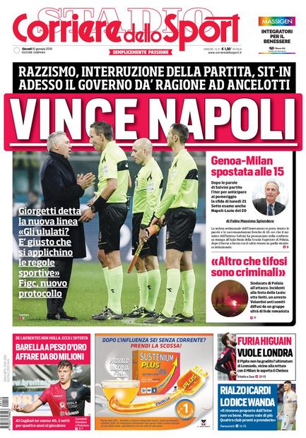 NewsCalcioIn Evidenza Rassegna stampa del 10 gennaio. L’edicola sportiva nazionale By Giuseppe Sacco il Gen 10, 2019 - 07:25:24 0 Condividi Oggi in primo piano sui quotidiani sportivi nazionali Factory della Comunicazione EdicolaRassegnaStampa 0 Condividi FacebookTwitterGoogle+ReddItWhatsAppPinterestE-mail