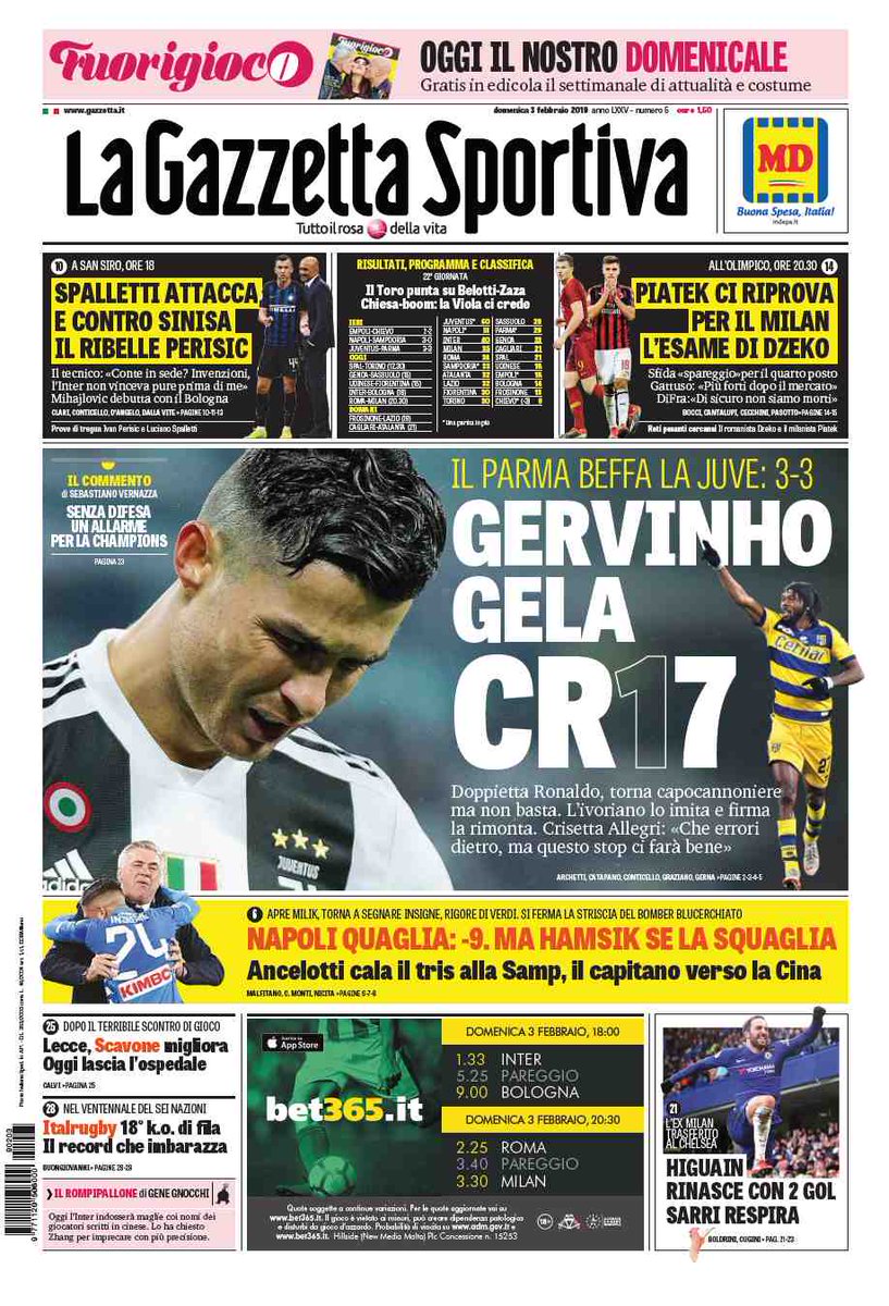 NewsCalcioIn Evidenza Rassegna stampa del 3 febbraio. L’edicola sportiva nazionale By Giuseppe Sacco il Feb 3, 2019 - 07:40:08 0 Condividi Oggi per i nostri lettori abbiamo selezionato queste prime pagine Factory della Comunicazione EdicolaRassegnaSport 0 Condividi FacebookTwitterGoogle+ReddItWhatsAppPinterestE-mail