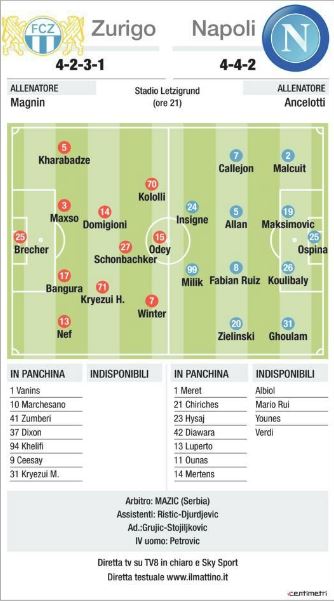 Ore 21 – Zurigo/Napoli: ecco le formazioni secondo Il Mattino (grafico)
