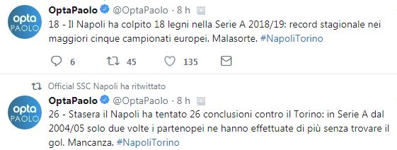 Casa Napoli… Record di presenze, record di marcature, gol in casa, marcature fuori casa, numero di assist vincenti…Diciamo la verità, queste sono le cose che fanno felice una squadra di calcio ed i suoi tifosi, ma di record come questo, cioè il numero di pali colpiti, qualsiasi team ne farebbe volentieri a meno. E’ toccato al Napoli…se non è sfortuna questa!