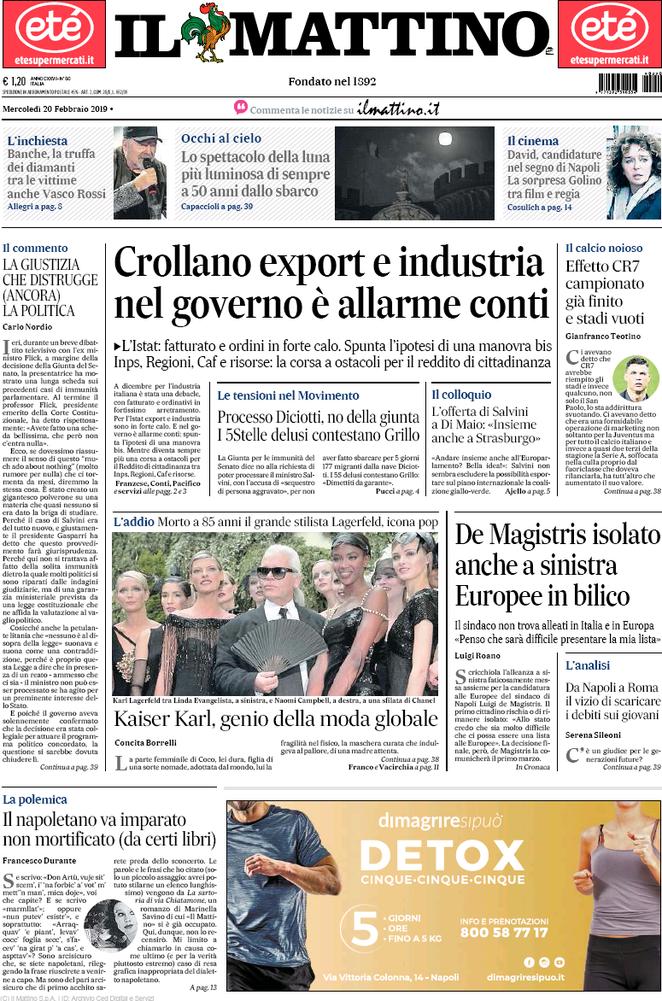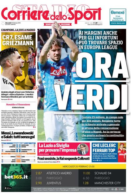 NewsCalcioIn Evidenza Rassegna stampa del 20 febbraio. Edicola sportiva nazionale By Giuseppe Sacco il Feb 20, 2019 - 07:40:58 0 Condividi Queste le prime pagine di oggi Factory della Comunicazione EdicolaRassegna 0 Condividi FacebookTwitterGoogle+ReddItWhatsAppPinterestE-mail