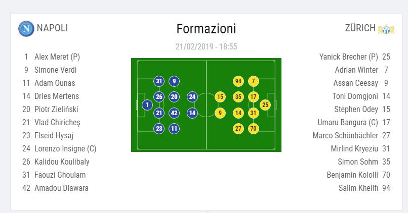 69′ – Assist di Ver72′ – Mertens passa ad Insigne che entra in area e prova a calciare, viene respinto dalla difesa dello Zurigodi per Ounas che calcia, palla sul fondo.