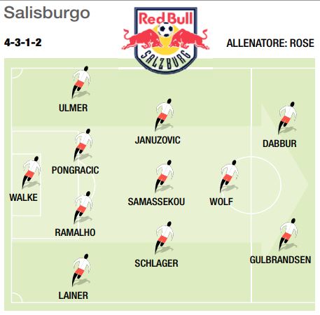 Squadra votata all’attacco,il Salisburgo in campo scende così (grafico)