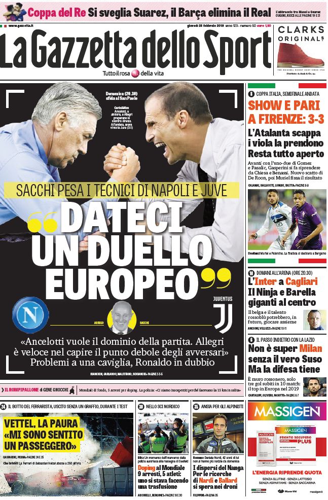 NewsCalcioIn Evidenza Rassegna stampa del 28 febbraio. L’edicola sportiva nazionale By Giuseppe Sacco il Feb 28, 2019 - 08:07:50 0 Condividi Primo piano – Le principali pagine sportive nazionali Factory della Comunicazione Rassegnarassegna stampaStampa 0 Condividi FacebookTwitterGoogle+ReddItWhatsAppPinterestE-mail