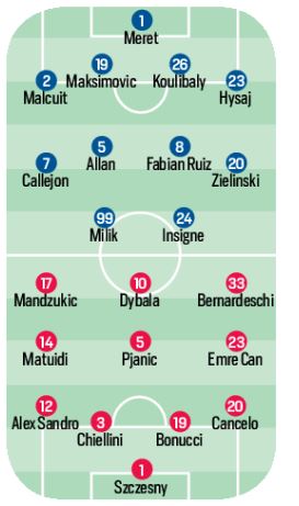 [Grafico formazioni] CdS – Napoli/Juve, Hysaj favorito su Ghoulam, Allegri con il dubbio Cr7