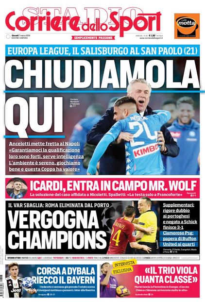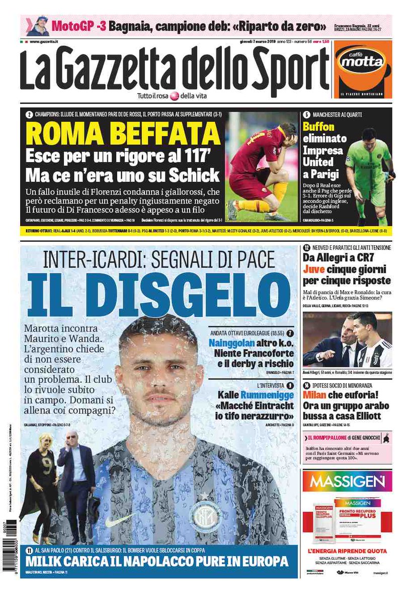 NewsCalcioIn Evidenza Rassegna stampa del 7 marzo. Edicola sportiva nazionale By Giuseppe Sacco il Mar 7, 2019 - 08:10:50 0 Condividi Oggi in primo piano eccovi le pagine sportive nazionali Factory della Comunicazione CalcioRassegnaStampa 0 Condividi FacebookTwitterGoogle+ReddItWhatsAppPinterestE-mail