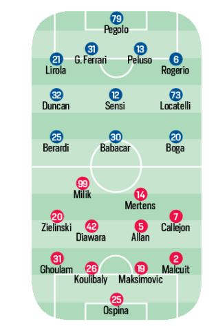 [Grafico formazione] Sassuolo/Napoli, De Zerbi sceglie Babacar in attacco, Ghoulam a sinistra