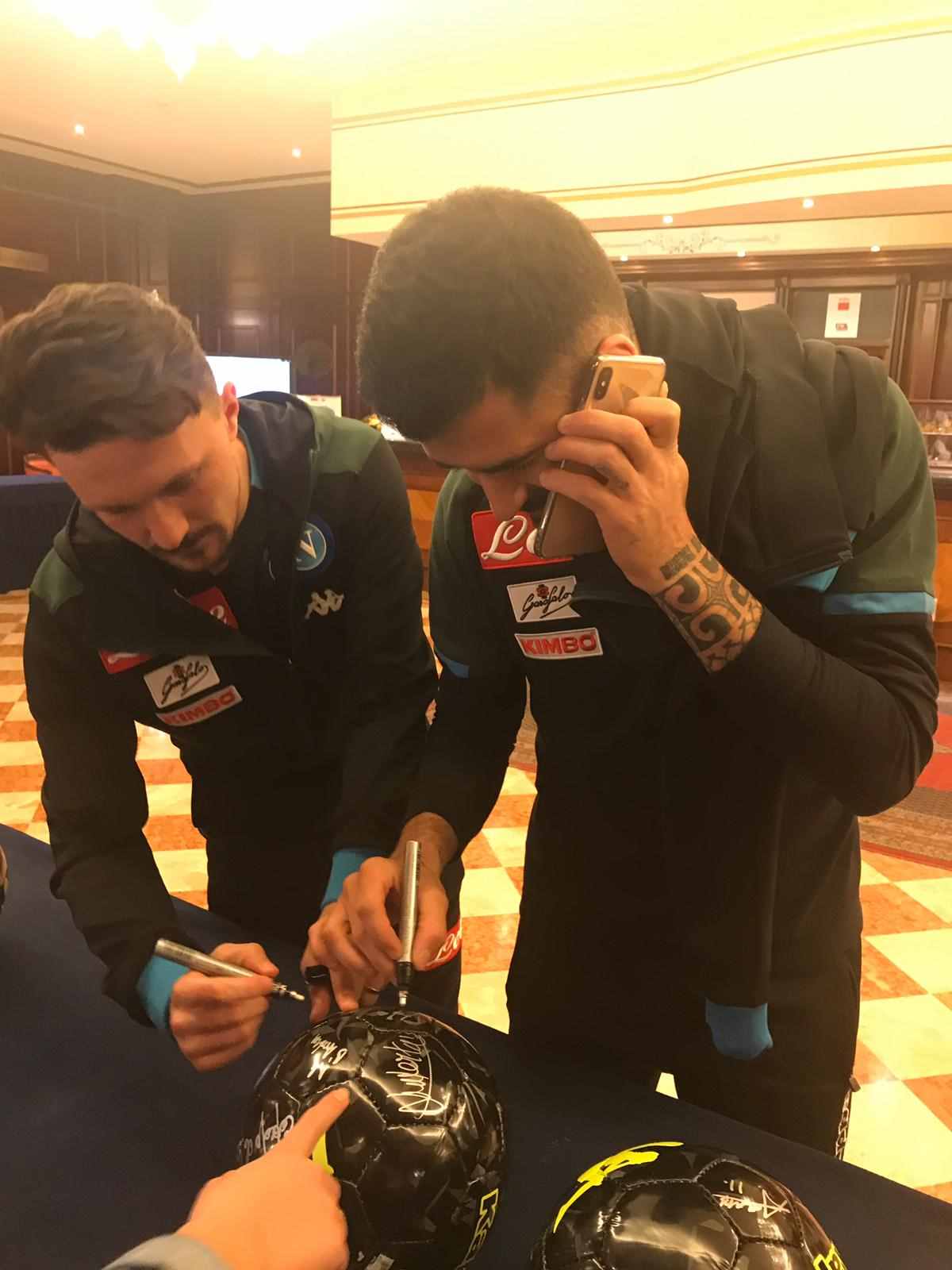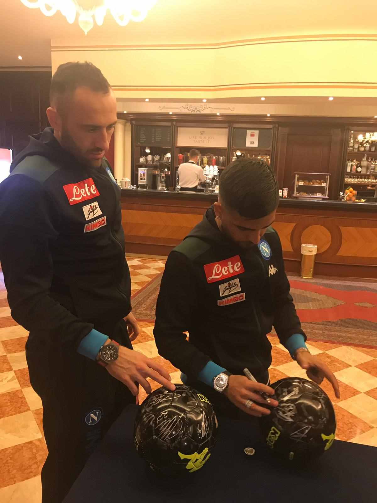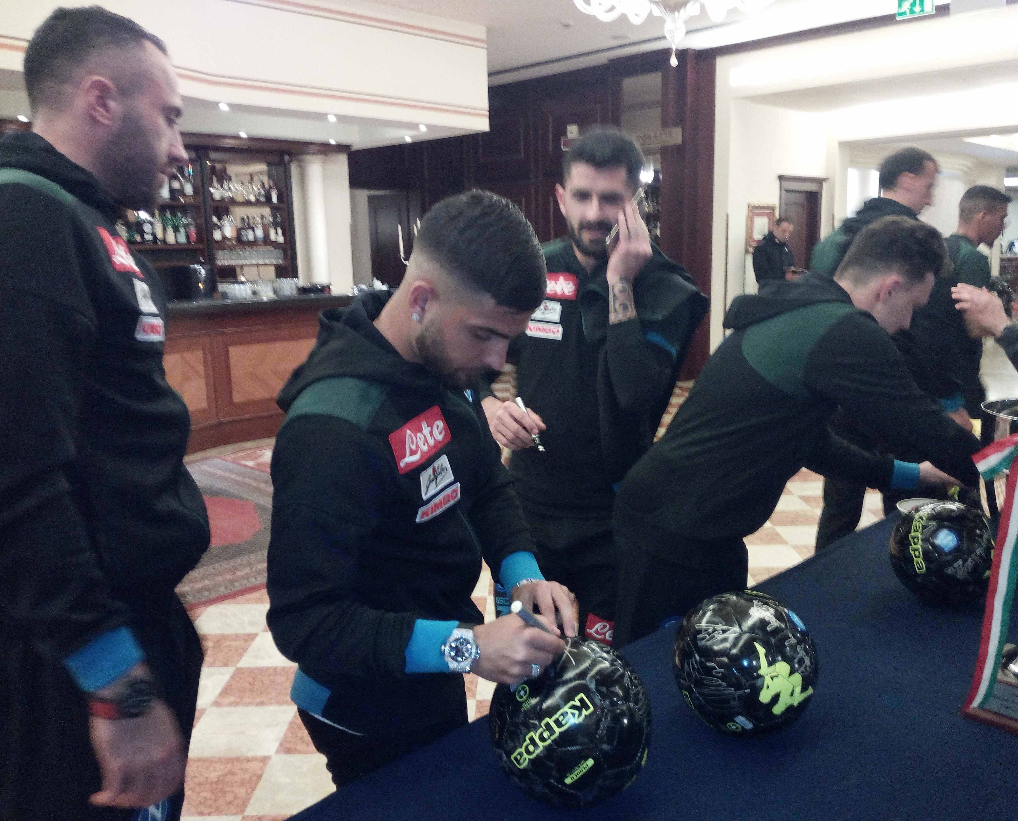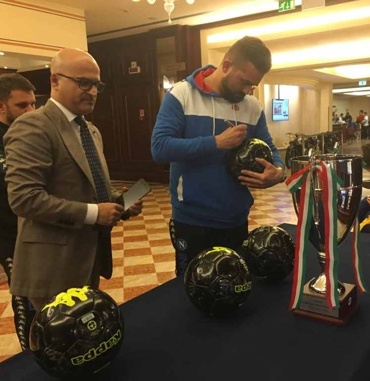 In occasione della presenza in terra emiliana per la partita che vedrà il Napoli contrapposto al Sassuolo per l’ottava giornata di ritorno del campionato di serie A TIM di domenica 10 marzo con inizio alle ore 18.00 al Mapei Stadium, l’ing. Salvatore Salerno ha raggiunto la compagine partenopea presso il ritiro al Classic Hotel di Reggio Emilia per raccogliere le firme dei giocatori e di Edoardo De Laurentiis su dei palloni che saranno destinati in beneficenza.