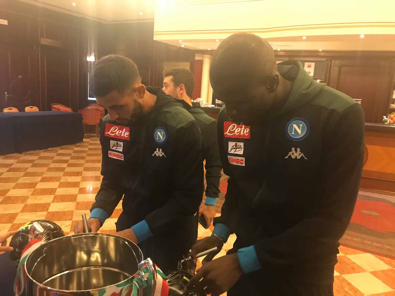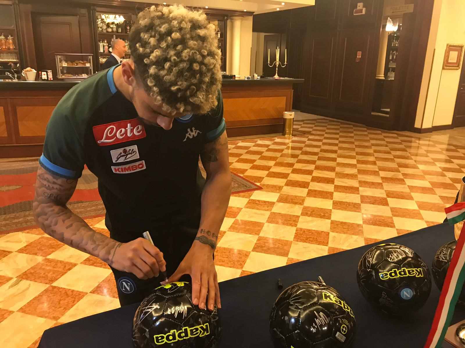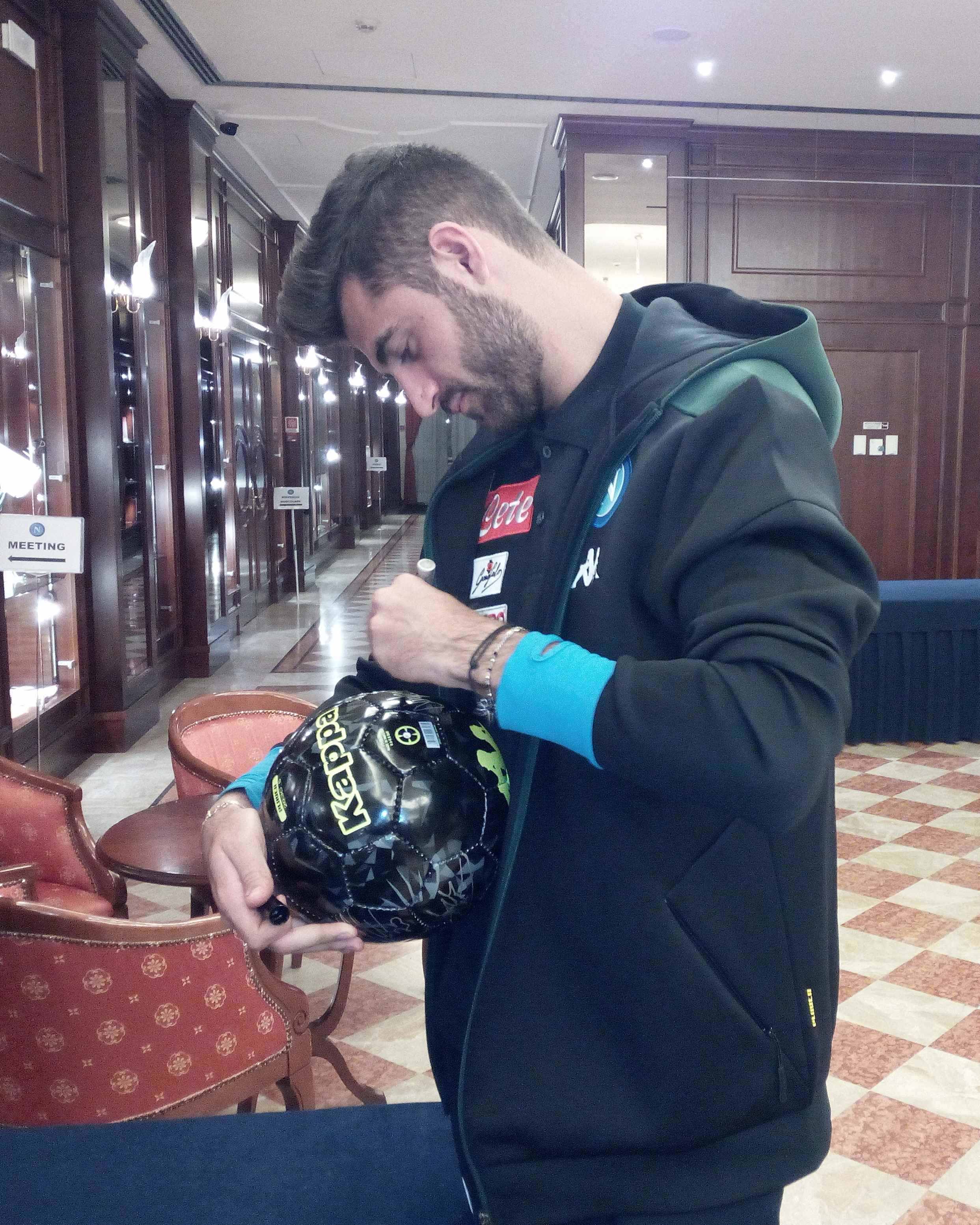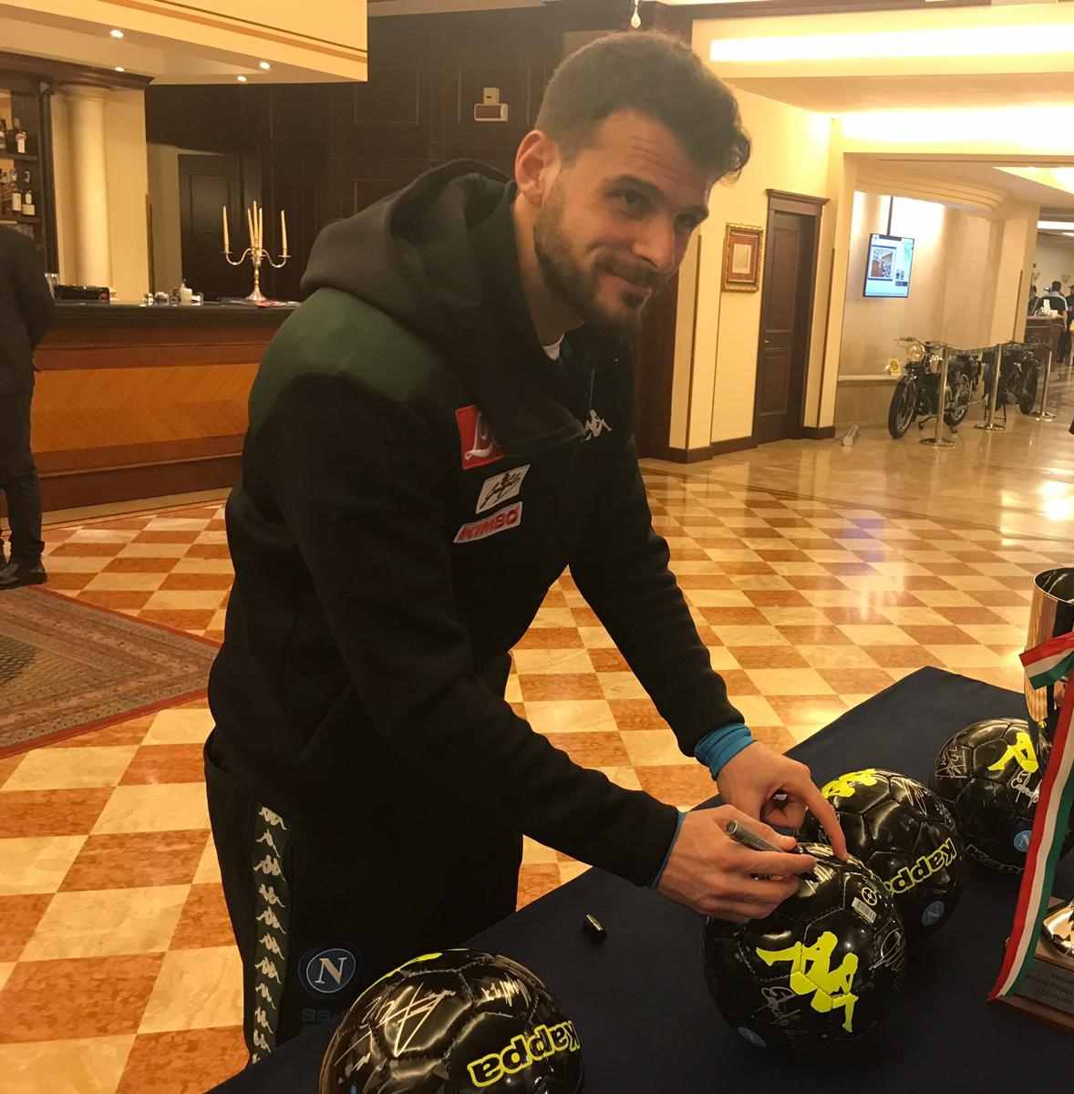 In occasione della presenza in terra emiliana per la partita che vedrà il Napoli contrapposto al Sassuolo per l’ottava giornata di ritorno del campionato di serie A TIM di domenica 10 marzo con inizio alle ore 18.00 al Mapei Stadium, l’ing. Salvatore Salerno ha raggiunto la compagine partenopea presso il ritiro al Classic Hotel di Reggio Emilia per raccogliere le firme dei giocatori e di Edoardo De Laurentiis su dei palloni che saranno destinati in beneficenza.