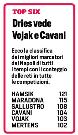 Top six: Mertens mette nel mirino Vojak e Cavani