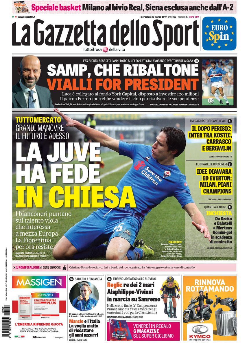 NewsCalcioIn Evidenza Rassegna stampa del 20 marzo, Edicola sportiva nazionale By Giuseppe Sacco il Mar 20, 2019 - 08:20:34 0 Condividi Oggi in primo piano sui principali quotidiani sportivi Factory della Comunicazione CalcioPagineprimeRassegna 0 Condividi FacebookTwitterGoogle+ReddItWhatsAppPinterestE-mail