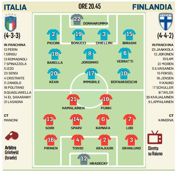 L’Italia entra in scena nelle qualificazioni per Euro 2020. Da favorita nel gruppo J, stasera affronta a Udine la Finlandia e martedì a Parma ospiterà il Liechtenstein. Mancini, puntando su interpreti giovani e di qualità, vuole subito dare un senso alla nuova avventura. Passano le prime 2 e quindi non dovrebbe avere problemi. La partenza (doppia) è in casa, in attesa delle trasferte di giugno in Bosnia e in Grecia. Si chiude il 18 novembre in Armenia.