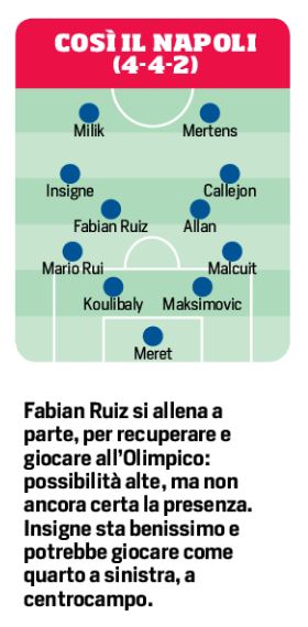 Roma/Napoli [grafico] Due squadre a specchio. Ancelotti si gioca le tre punte. Out Manolas