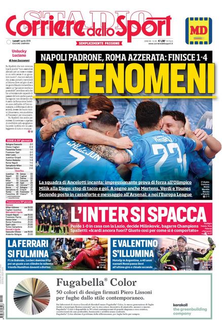 NewsCalcioIn Evidenza Rassegna stampa del 1° aprile. Le prime pagine sportive By Giuseppe Sacco il Apr 1, 2019 - 07:40:50 0 Condividi Oggi in primo piano sui principali quotidiani sportivi nazionali Factory della Comunicazione CalcioPagineprimeRassegna 0 Condividi FacebookTwitterGoogle+ReddItWhatsAppPinterestE-mail