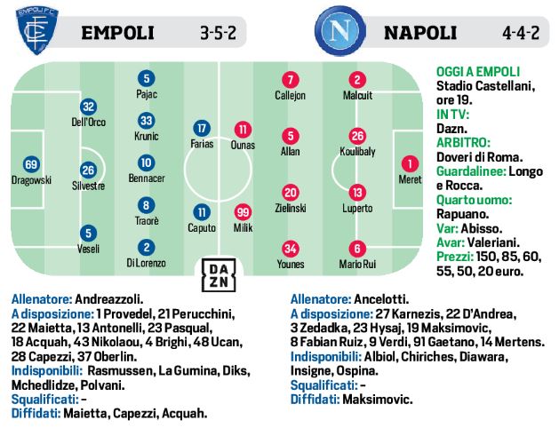 Millennio, che dopo settantaquattro ore rimanda in campo e fra novantasei introdurrà ad un’altra partita: Ancelotti cambia, e parecchio, dovrebbero essere cinque volti nuovi rispetto all’Olimpico e magari capiterà con il Genoa che ce ne siano altrettanti al fischio d’inizio: va evitato l’acido lattico, vanno tutelate le energie fisiche e anche quelle nervose, vanno spalmate occasioni speciali, perché in questi due mesi gli esami non finiranno mai, e c’è un’età sempre per mettersi in gioco, per confrontarsi con se stessi, per diventare grandi. Fonte: CdS