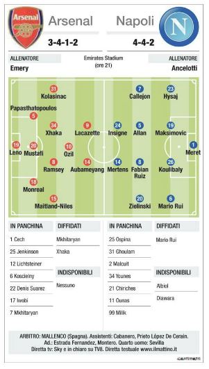 Arsenal/Napoli per il Mattino la sorpresa sarà in attacco, a Meret la difesa