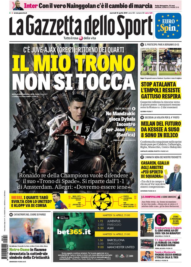 NewsCalcioIn Evidenza Rassegna stampa del 16 aprile. Edicola sportiva nazionale By Giuseppe Sacco il Apr 16, 2019 - 07:40:54 0 Condividi Factory della Comunicazione Oggi per Voi abbiamo trovato queste prime pagine sportive aagineCalcioprimeRassegna 0 Condividi FacebookTwitterGoogle+ReddItWhatsAppPinterestE-mail