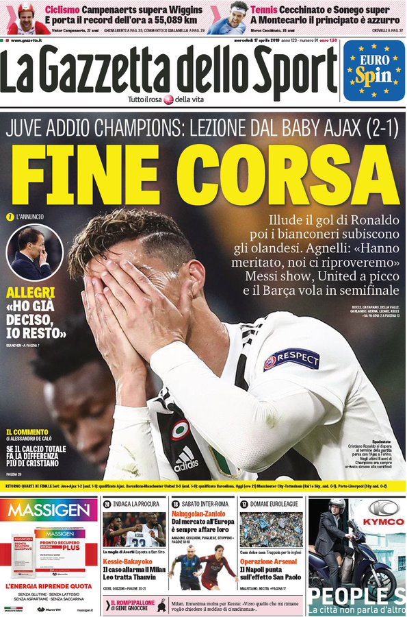Così titola la Gazzetta dello Sport, la Juve inferiore alla scugnizzeria olandese