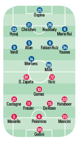 [Grafico] Napoli/Atalanta, spazio a Verdi e Younes, orobici e il dubbio Ilicic