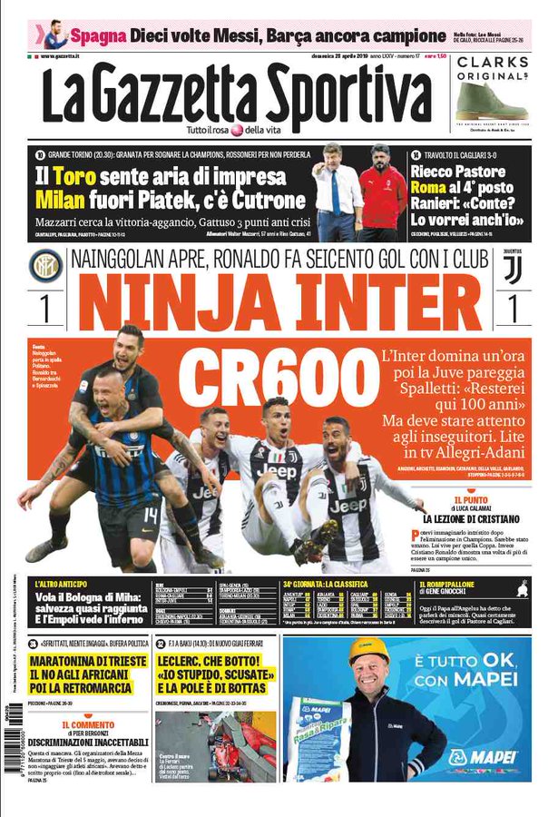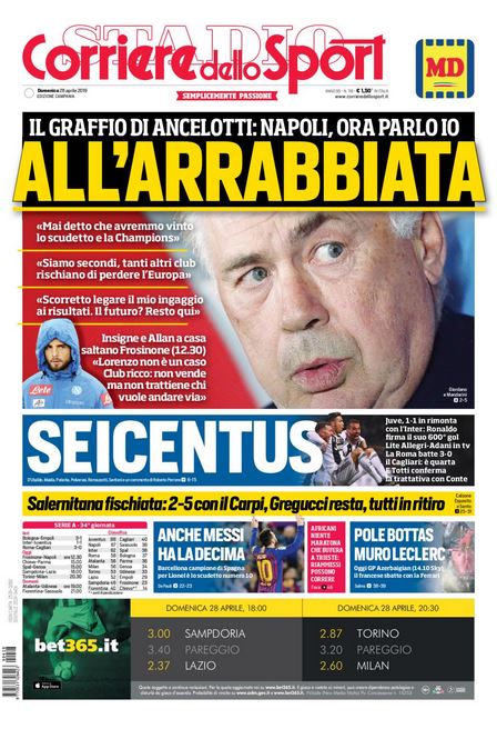 NewsCalcioIn Evidenza Rassegna stampa del 28 aprile. Edicola sportiva nazionale By Giuseppe Sacco il Apr 28, 2019 - 07:00:33 0 Condividi Oggi in primo piano sui quotidiani sportivi nazionali Factory della Comunicazione NapoliRassegnaStampa 0 Condividi FacebookTwitterGoogle+ReddItWhatsAppPinterestE-mail