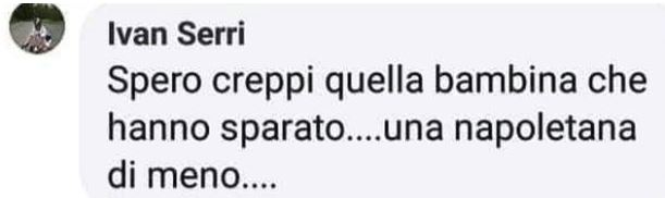 Si tratta dello screenshot della pagina effettuato prima che l’individuo rimuovesse quei commenti. Il resto della conversazione, attualmente ancora visibile, però è ancora lì. Ovviamente tutti, nessuno escluso, a prescindere dal tifo calcistico, hanno censurato quelle orribili parole.Mattino.it