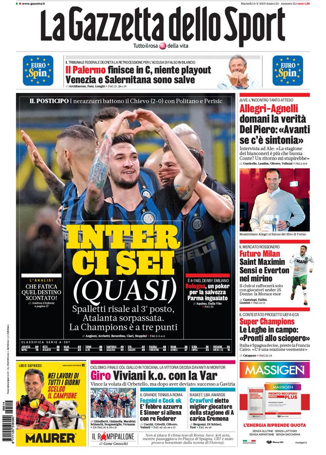 NewsCalcioIn Evidenza Rassegna stampa del 14 maggio, l’edicola sportiva By Giuseppe Sacco il Mag 14, 2019 - 07:30:46 0 Condividi Oggi in primo piano sui principali quotidiani sportivi Factory della Comunicazione RassegnaStampa 0 Condividi FacebookTwitterGoogle+ReddItWhatsAppPinterestE-mail