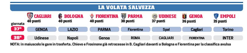 Inimmaginabile che anche Genoa, Fiorentina e Udinese potessero in questo momento della stagione essere convolte per non retrocedere. così le ultime due gare per la salvezza