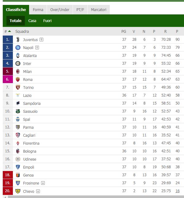 NewsCalcio Classifica serie A. Napoli vicino agli 80 punti. L’Atalanta aggancia l’Inter al 3° posto By Giuseppe Sacco il Mag 19, 2019 - 23:40:12 0 Condividi Poteva essere sola al 3° posto, l’Atalanta raggiunta ll’80esimo Factory della Comunicazione 0 Condividi FacebookTwitterGoogle+ReddItWhatsAppPinterestE-mail