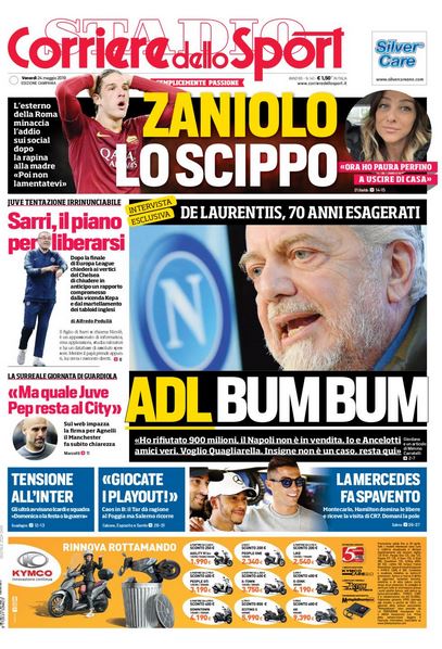 NewsCalcioIn Evidenza Rassegna stampa del 24 maggio. Edicola sportiva nazionale By Giuseppe Sacco il Mag 24, 2019 - 07:35:30 0 Condividi Oggi in primo piano dai principali quotidiani sportivi nazionali Factory della Comunicazione RassegnaStampa 0 Condividi FacebookTwitterGoogle+ReddItWhatsAppPinterestE-mail