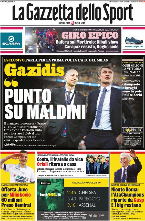 NewsCalcioIn Evidenza Rassegna stampa del 29 maggio. Edicola sportiva nazionale By Giuseppe Sacco il Mag 29, 2019 - 07:40:01 0 Condividi Queste le prime pagine dei principali quotidiani sportivi Factory della Comunicazione EdicolaRassegnaStampa 0 Condividi FacebookTwitterGoogle+ReddItWhatsAppPinterestE-mail